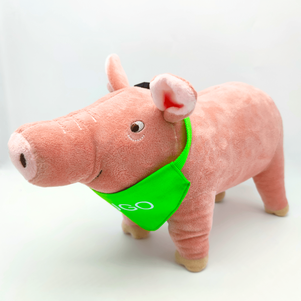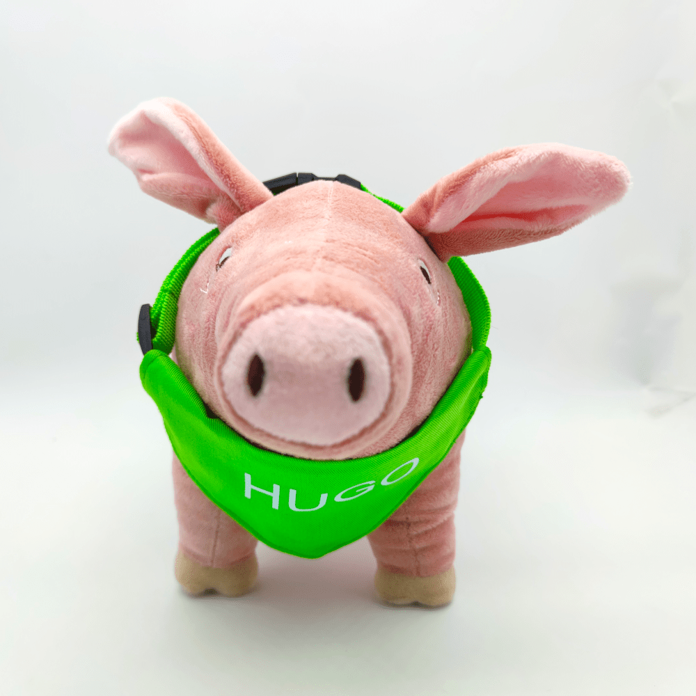 Nu kan du købe Emils aller-bedste ven som bamse – Grisen HUGO, i blød og lækker kvalitet. HUGO har grøn bandana med sit navn på